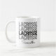 Bold letters spell out the word "LACROSSE" with the "O" replaced by a basket. The slightly distressed design makes a great personalized gift for a player, coach, team or fan. Available in red, orange, yellow, purple, green, blue, gray, black, forest green, navy, maroon, burnt orange, gold and powder blue. Matching products available.