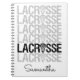 Bold letters spell out the word "LACROSSE" with the "O" replaced by a basket. The slightly distressed design makes a great personalized gift for a player, coach, team or fan. Available in red, orange, yellow, purple, green, blue, gray, black, forest green, navy, maroon, burnt orange, gold and powder blue. Matching products available.