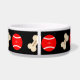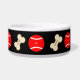 A pet bowl with hand drawings of bones and balls. The background, images and text can be personalized. Original artwork by W.B.