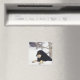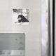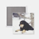 Black dog lying in snow magnet