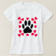 Black Dog Paw Print With Heart Shapes T-Shirt