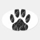 Black Dog Paw Print With White Flourishes Oval Sticker