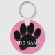 Black Dog Pawprint Hand Drawn Custom Name Pink Keychain