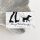 Destei's black silhouette of a walking woman's legs together with a small dog. The background is a faux (not real) marble look-like texture. NOTICE: THE DESIGN IS A DIGITAL IMAGE AND IT WILL BE PRINTED ON THE PRODUCT.