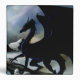 A black dragon on a cliff edge ready to take his morning flight amongst a blue sky and the mountains