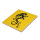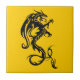 A black dragon in stencil or tatoo style is centered on a gold background for this tile.