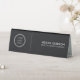 Make a professional statement with these black editable name template table tent signs. These signs feature customizable fields for your logo, name, and job position, adding a personalized touch to any event or workspace. Perfect for conferences, seminars, meetings, and office settings, these sleek table tent signs are designed to impress.