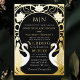 Black Elegant Art Nouveau Swans Wedding Foil Invitation