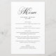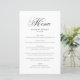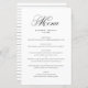 Elegant black script menu card featuring flourish script, simple typography and stripes pattern. This script menu card is perfect for weddings, birthdays, baby showers, bridal showers and so much more. Personalize by adding names, date and menu details.