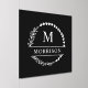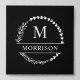 Black Elegant Greenery Wreath Monogram & Last Name Peel And Stick Photo Tile