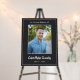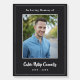Black funeral sign or memorial sign with your loved one's photo inside a thin white frame, your loved one's name in a bold script and years living in elegant white fonts against a black background. A simple yet elegant memorial service sign with a large photo. Traditional in loving memory sign personalized with your loved one's photo, name, and years living.