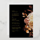 This elegant wedding invitation features a beautiful bouquet of hand-painted boho watercolor burnt orange and terracotta leaves, cream and beige dahlias, and beautiful rust-colored roses on a black background printed in real gold foil. Find matching items in the Black Autumn Romance Collection.