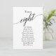 This is an elegant script table number. This table number is double sided. You'll only need to type in the names on one side. They'll be copied automatically on the other one.