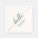 Add stylish detail to your special day with this personalized party napkin. This design features stylish typography "hello" in black with custom text. You can personalize the text for any event or party. Matching invitations and party supplies are available in my shop BaraBomDesign.