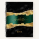 Black emerald green gold agate marble name script notebook