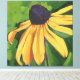 Bring the joyous beauty of a sunny yellow black eyed Susan flower indoors with this reproduction of an original hand-painted artwork on canvas. This piece features a striking yellow flower dominating a lush, dark green and blue-black background, creating a dramatic contrast that draws the eye.