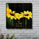 Decorate your wall with this Black Eyed Susan True Love Photograph Triptych. It features a photo with two black eyed susan flowers touching. The phrase 'True Love' is written in yellow.