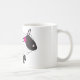 A black faced sheep with lots of white wool and a flower in its hair. This design looks really effective on these Mug