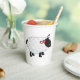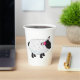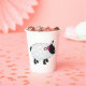 A black faced sheep with lots of white wool and a flower in its hair. This design looks really effective on these Paper Cups