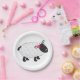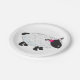 A black faced sheep with lots of white wool and a flower in its hair. This design looks really effective on these Paper Plates