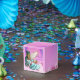 A fairy poses in the sky with the words "Thanks for coming" next to her. A cute theme for a girls birthday party.