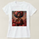 This shirt features artwork of a beautiful dark-skinned Black fairy woman wearing a crimson red gown, surrounded by pink and deep red roses. Her golden gossamer wings, lush rose crown, and red jewelry create a regal and enchanting presence. Fluttering butterflies and lush blooms complete the magical, melanin-rich scene.