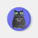 Black Fat Cat With Green Eyes Custom Text Blue Magnet