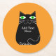 Black Fat Cat With Green Eyes Custom Text Round Paper Coaster