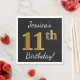 Black, Faux Gold 11th Birthday + Custom Name Napkins