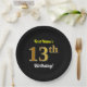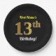 Black, Faux Gold 13th Birthday + Custom Name Paper Plates