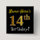 Black, Faux Gold 14th Birthday, With Custom Name Pinback Button