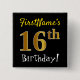 Black, Faux Gold 16th Birthday, With Custom Name Button