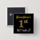 Black, Faux Gold 1st Birthday, With Custom Name Button