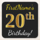 Black, Faux Gold 20th Birthday + Custom Name Square Paper Coaster