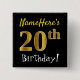 Black, Faux Gold 20th Birthday, With Custom Name Pinback Button