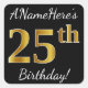Black, Faux Gold 25th Birthday + Custom Name Square Sticker