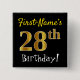 Black, Faux Gold 28th Birthday, With Custom Name Button