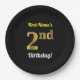 Black, Faux Gold 2nd Birthday + Custom Name Paper Plates