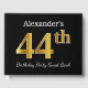 Black, Faux Gold 44th Birthday Party + Custom Name Guest Book
