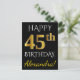 Black, Faux Gold 45th Birthday + Custom Name Postcard
