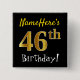 Black, Faux Gold 46th Birthday, With Custom Name Button