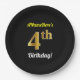 Black, Faux Gold 4th Birthday + Custom Name Paper Plates