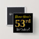 Black, Faux Gold 53rd Birthday, With Custom Name Button