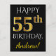 Black, Faux Gold 55th Birthday + Custom Name Postcard