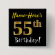 Black, Faux Gold 55th Birthday, With Custom Name Pinback Button