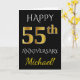Black, Faux Gold 55th Wedding Anniversary + Name Card