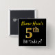 Black, Faux Gold 5th Birthday, With Custom Name Button