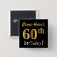 Black, Faux Gold 60th Birthday, With Custom Name Pinback Button