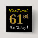 Black, Faux Gold 61st Birthday, With Custom Name Button