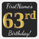Black, Faux Gold 63rd Birthday + Custom Name Square Sticker